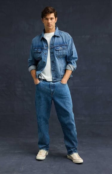 We use high-quality, durable cotton denim with a slight stretch for comfort and long-lasting wear.